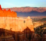 浪巴铺土林(新华土林)位于楚雄州元谋县城西33公里处的新华乡境内,距班果土林15公里,地处元谋、大姚、牟定3县交界处。景区总面积8平方公里,是元谋土林景观的一个重要景点。新华土林土柱高大密集,类型齐全,圆锥状土林发育良好,一般高3-27米,高达42.8米,高度居元谋土林之冠。浪巴铺土林(新华土林)色彩丰富,土柱顶部以紫红色为主,中部为灰白色,下部则以黄色为基调,其间夹杂有褐红、灰白、棕黄、灰黑等多种颜色。土柱的形态各异,有圆锥状、峰丛状、雪峰状、城垣状等。远望新华土林,就像一座座绚丽的宫殿;走进景区,犹如置身于古堡画廊。新华土林周围分布着几个大小不等的水库,其中浪巴铺水库水清似镜,土林倒映其中,如诗如画。土林中还有几条潺潺小溪,因此植被较好,竹子、松树、灌木、花草点缀在土柱峰丛间,还可见到野兔、雀鸟等小动物。注意:由于景区尚未开发,进入景区请务必注意安全,量力而行。好能请熟悉当地情况的人当向导。游览土林小贴士