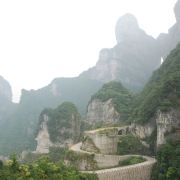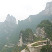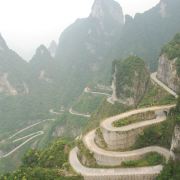 天门山通天大道是位于天门山国家森林公园的一条盘山公路,蜿蜒逡巡于高山绝壁,是祈福朝圣天门的通道。公路海拔落差大,这里的旋转急弯比比皆是,环环相扣,层层叠叠,犹如飘扬的玉带萦绕苍穹。道路的沿途可领略天门山国家森林公园的惊险奇崛。