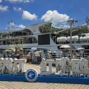 湛江红嘴鸥游船位于赤坎区保利天悦湾水上运动中心,湛江航运集团斥巨资建造的一艘集观光、旅游、饮食、娱乐于一体的游船,作为“港湾揽胜”(湛江八景之一)精品线路游启动。