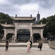 焦山海拔不高,约七十多米,与金山、北固山合称为“京口三山”。位于镇江东北面的长江江心,与对岸象山夹江对峙。焦山上古木参天,掩藏着许多石刻、古碑以及寺庙等众多景点。焦山的大门在象山脚下,登焦山,需先乘摆渡,大概5分钟不到即到达岸对面。游览焦山一般都是上岸后西行上山,可以包揽整个焦山的景点。上岸后会经过一座仿古石桥,迎面是一座四柱三门的汉白玉牌坊,牌额正面镀金篆刻了四个大字——焦山胜境,背面也是四个字——汉晋遗风。没走几步便是焦山风景区-定慧寺的山门,施耐庵在《水浒传》写过:“焦山有座寺,藏在山凹里,不见形势,谓之山裹寺”,讲的就是焦山风景区-定慧寺。寺之东侧小院内,正中是茗山法师纪念堂,堂内案上塑茗山半身像,周绕依墙长廊,墙上镶多块赞颂茗山石刻。与茗山堂对称的寺院西侧,是焦公祠,内塑焦光像,祠前牌坊刻着“三诏坊”字样。焦山风景区-定慧寺东的焦山风景区-观澜阁是乾隆皇帝南巡时的行宫,现为焦山佛教学院。乾隆行宫旁边就是宝墨轩(即焦山碑林),珍藏历代碑刻四百多余方碑刻,仅次于西安碑林,是江南第一大碑林。其中有名的就要数《瘗(yì)鹤铭》,据说是一个书法家,家养的仙鹤死了,写一篇铭文来纪念一下。这篇铭文原本雕刻在焦山石壁上,后来遭雷击残破,现在看到的是后世的拓片。宝墨轩之东不远处是焦山古炮台,炮台呈马蹄形排列,面对大江,是抗英反帝斗争的重要遗迹。从古炮台北登山西上,就到了吸江楼,为镇寺塔旧址。楼为二层、六角,在未建万佛塔时,此楼为观景胜地,远眺大江,如今已不开放。继续沿着台阶一路向上,登顶后是万佛塔,大门两侧刻着“海不扬波”和“中流砥柱”。登上万佛塔,可将长江景色尽收眼底。过塔向西下山,经壮观亭、塔林、三诏洞以及碑林的另一部分——焦山风景区-摩崖石刻等,便又回到了焦山风景区-定慧寺,再次乘摆渡回到景区大门。出了景区,在对面的公交车站旁边有餐馆,若是饿了,可先吃了饭再返回。