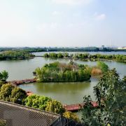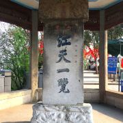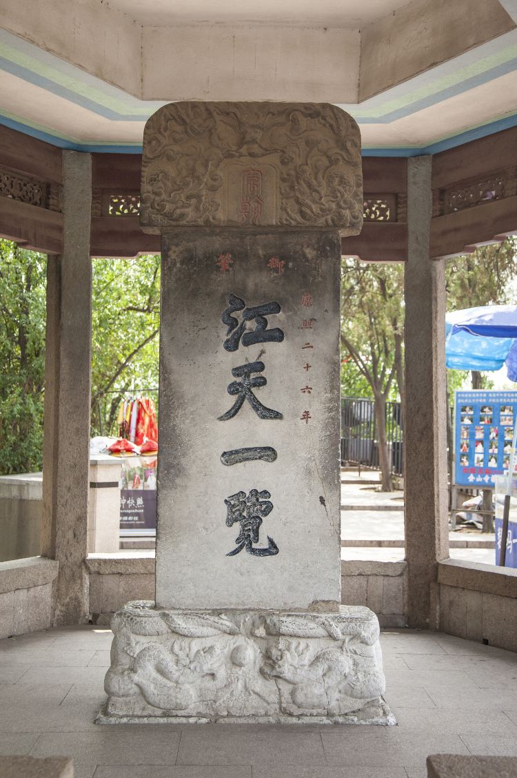 江天一览位于金山景区内,这里有一处凉亭,亭下立有一碑刻“江天一览”四字,站在此处,可俯瞰景区美景。