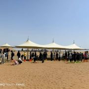 腾格里•金沙海旅游度假区位于宁夏沙坡头区迎水桥镇迎闫公路与小湖路交汇处,景区占地1.16万亩,充分展现全生态腾格里沙漠的奇美景观。主要景点有大漠观海楼、丝路长街、狂野地带、丝路星辰帐篷酒店、大漠水上乐园、沙漠阳光浴场、拓展基地、军事营地、丝路驼队等。