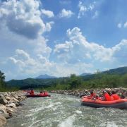 大连天门峡漂流是一项位于大连天门山国家森林公园内的水上冒险活动,大连天门峡漂流的河道九曲十弯,水量丰富且水质清澈。从起点到终点的自然落差达到91米,全程设有12处激流点。其中,有三分之一的河段落差大、水流急、弯道多,为游客带来跌宕起伏、激情四溢的漂流体验。漂流起点为双龙汇,途经黑石礁、天门谷、鸽子洞、转兴湖、神龟湾、喜鹊汀、蜂蜜砬、老龙头、幸福桥、鲤鱼汀,终点为凤凰湖。这些景点寓意龙凤呈祥,两岸美景如画,让游客仿佛置身于山野图画之中,恍如步入人间仙境。