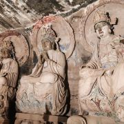 般若洞是深藏冰峪文化底蕴的佛、道圣地,寺庙建于天然壶形石窟之中,古有壶天之称。洞内有“般若洞”和“万寿观”。洞中有洞,洞中建庙。佛道两教互融并弘,是我国一绝。庙北门有石刻“石门开南天”,门东边石壁上刻“东井生太乙”而得名。般若洞的正殿为大雄宝殿,供奉释迦牟尼和十八尊者;东殿为准提殿,供奉十八只手准提菩萨。西殿两层楼为万寿观,一楼是三官殿,供奉天、地、水三官;二楼是玉皇阁,供奉玉皇大帝。
