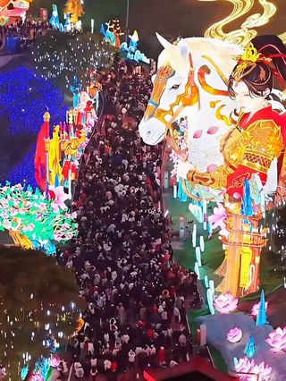 第三十二届自贡国际恐龙灯会将于2026年1月24日在中华彩灯大世界开幕。本届灯会以“灯绘华夏 筑梦未来”为主题,全力打造了“中国结大道”“福禄广场”“木兰传奇”“匠心非遗”“神奇华夏”等十大板块,用11组大型灯组、200余组中小型灯组,打造了一场融合非遗技艺与前沿数字科技的沉浸式盛会,为游客带去一幅“万象共生”的艺术画卷。