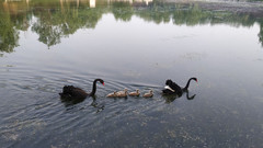 玉渊潭遛早2今天是个大晴天,红花绿树水碧蓝,突然池中鸭群到,好像小鸭幼儿园。妈妈带领