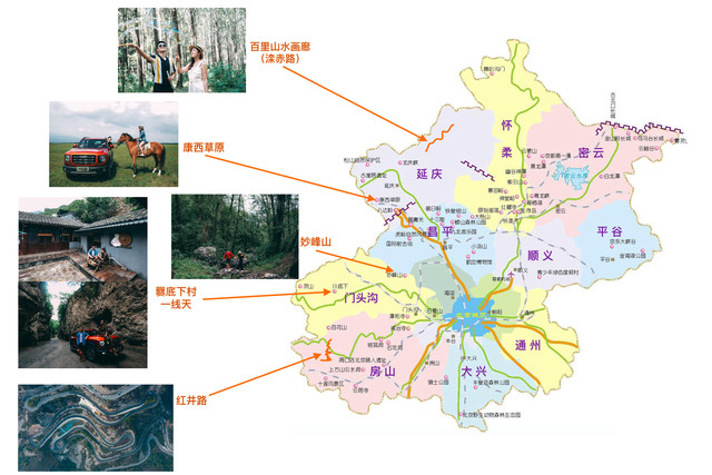 1.京郊景点比较分散,且距离城区较远,时间较充足时可以环线串联起来玩;但如果时间有限,比如利用周末和小长假等两三天时间游玩,则可以分区进行,比如我们这次的行程,就可以拆成门头沟和房山的西线、以及延庆的北线,分别游玩。