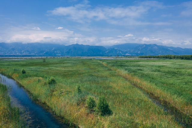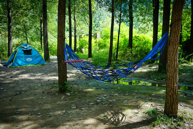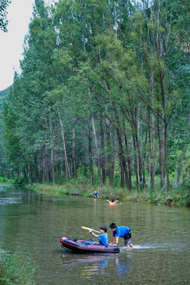 开到一片水塘边,很多人拖家带口自驾而来,搭起帐篷、支上吊床,孩子们玩水撒欢、大人们则享受一下难得放松的时光。