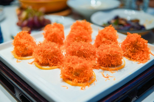 最后一道虾球,刚端上来的时候,我们每个人都忍不住“哇”。这真的是我见过最大的虾球了!真材实料的大虾,裹满黄芥末酱,甜甜的口感里又带了一丝丝芥末的味道,一点也不会觉得甜腻,味道超棒!