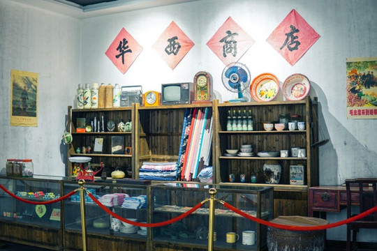 华西商店,模拟了从前的模样,这些售卖着的产品,也是早些年家家户户的常用品。