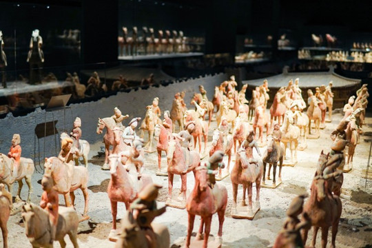 负一楼的收藏馆,展示了一些陶土马匹,陈设了一些古董。走进来的第一反应,还以为到了陕西省博物馆。