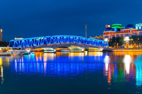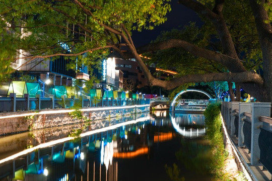 欧式建筑在灯光的掩映下份外好看,这里的桥还是复刻了上海的“外白渡桥”,晚上有了灯光以后,我竟有点梦回“情深深雨濛濛”。