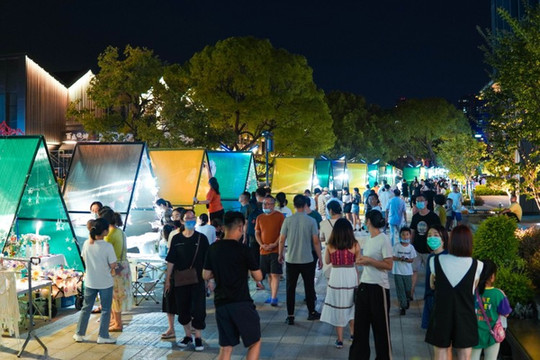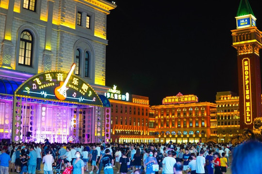 周末这里人流量还是挺大的,晚上飞马音乐吧围满了人,超high的音乐声响起,夜晚的氛围瞬间拿捏。