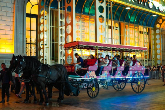 乘坐完贡多拉小船,还可以马车游园,体会从前乘坐马车的感觉。哒哒哒的马蹄声响起,思绪也开始悠远起来。