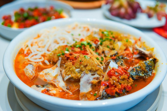 剁椒鱼头搭配面条,比较开胃的一道菜,鱼头很鲜辣椒刺激着味蕾。面条吸满了汤汁,真的是越吃越想吃。