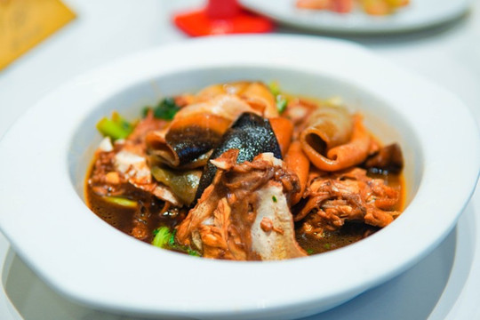 河豚两吃,皮做红烧,满满胶原蛋白。红烧又很入味,女生多吃美容养颜!