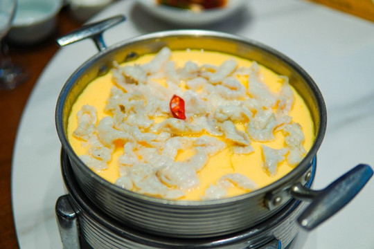 河豚蒸蛋,真的太鲜了!!!鸡蛋很嫩加上河豚的鲜味,咸度刚刚好,一大盘分分钟就光盘啦。