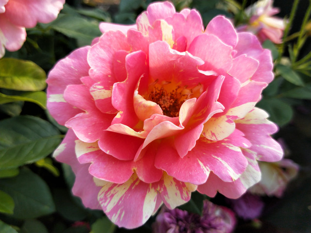 “倪欧碧”是深红色的,花世浅黄,颜色很艳丽,看着颇有些丝质感,仿佛是一块上好的丝绸。花瓣不那么紧凑,但配上这么热烈的颜色,倒也恰到好处。