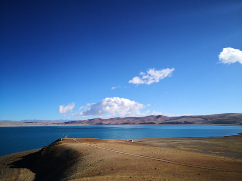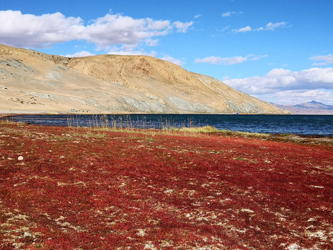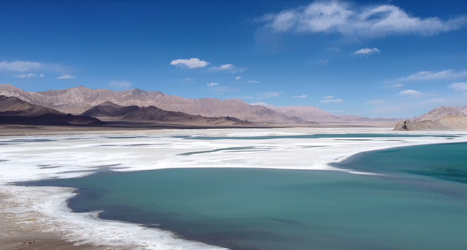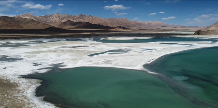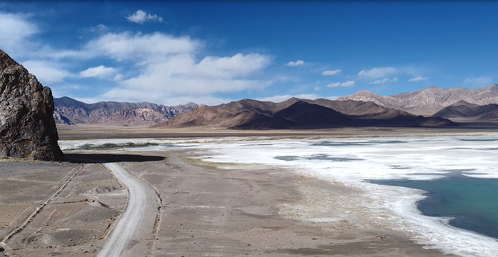 发挥越野车功能,达到很少人提及的伦玛卓木湖,是个盐湖,湖水碧绿,宝石般色彩,美轮美奂