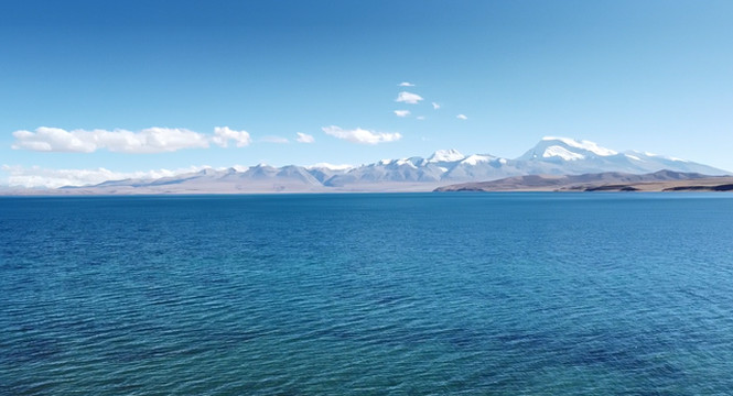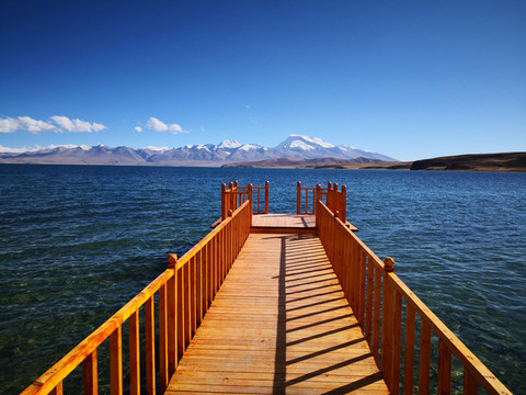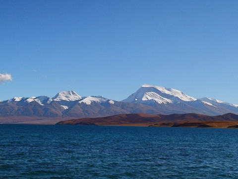 相邻的玛旁雍措也是西藏三大圣湖之一,湖边是纳木那尼峰