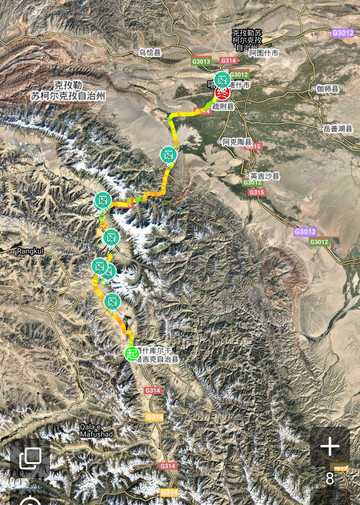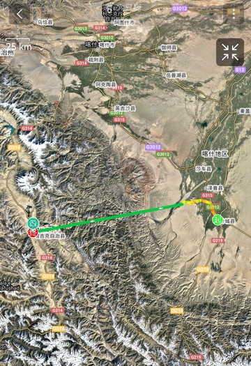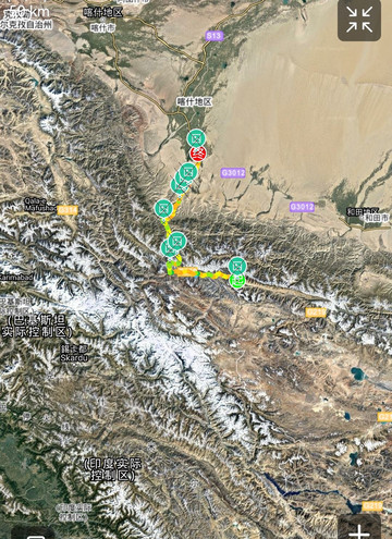 叶城至塔县,途径5A金湖杨景区,行程211公里,地图上的直线估计是没信号造成的