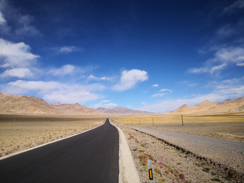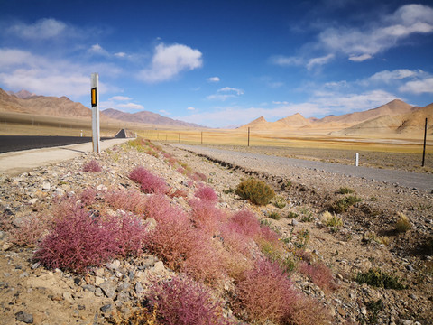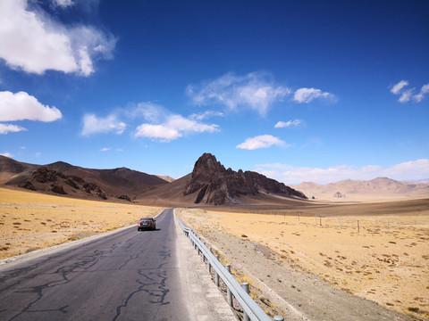 出多玛后公路一直在戈壁上穿行, 路途中经常数百公里没信号和人烟,不过风光景色壮丽迷人。