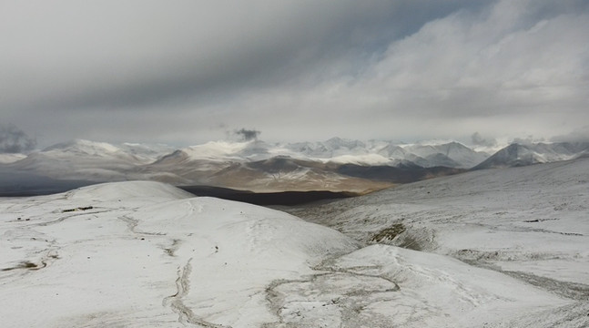 翻过海拔5191的拉梅拉达坂,去班公湖这段都是连绵雪峰,山坡上基本没有植物了,但色泽很丰富,恍若油画般明亮。