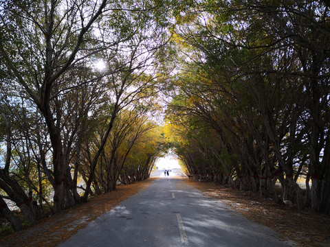 金湖杨林公园的叶子还未全黄,时间未到,租个马车溜达一圈