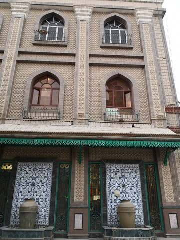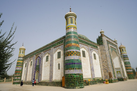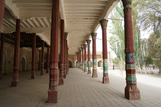 香妃墓的后面也值得走走,加满清真寺的六十二根柱子由六十二位工匠精雕而成,每根都不一样的