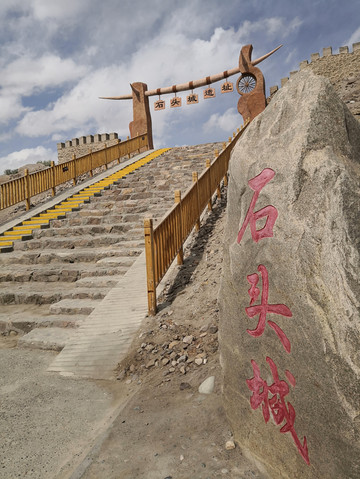 石头城建在高丘上,城外建有多层或断或续的城垣,周围有雪峰,下面有草滩、河流。根据介绍这个古城废弃于唐,曾经是唐羯盘陀国都城。如今已不见当年的繁华与权威,只见残垣断壁在夕阳下沉默。