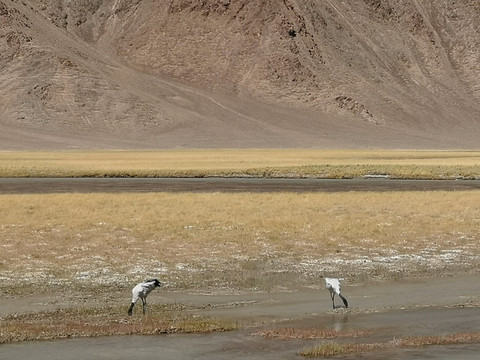路边的黑颈鹤