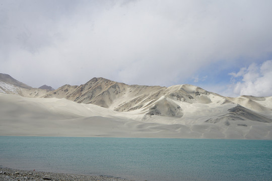 蜿蜒曲折的公路到达海拔约3400米时,突然豁然开朗。一座座雪峰映照着绵延不断的山脉,洁白柔软的白沙山和白沙湖就在眼前了。