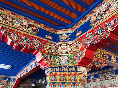 整个寺院坐北朝南,房舍鳞次栉比错落有致,于不经意间体现和谐对称。