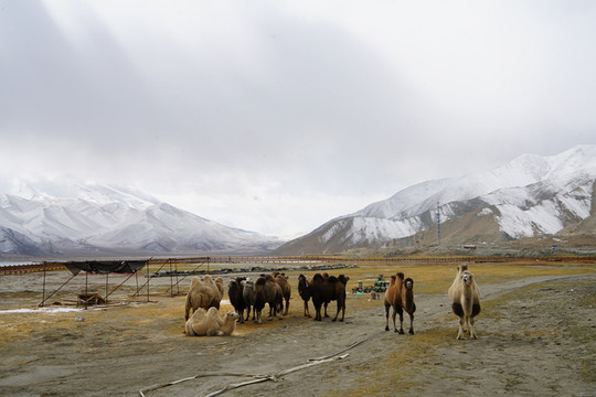 慕士塔格雪峰,7546米的冰山之父,景区正在建造大门,看来也快要收费了。天气不好还是去看看,时不时还飘着雪花,一片白茫茫。
