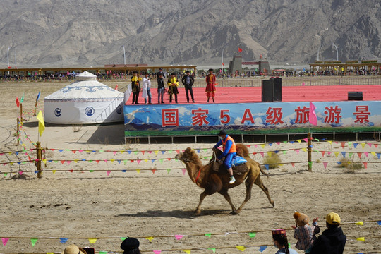 今天有赛马,有歌舞表演,赛马还有赛骆驼,赛马会场是深圳援建的