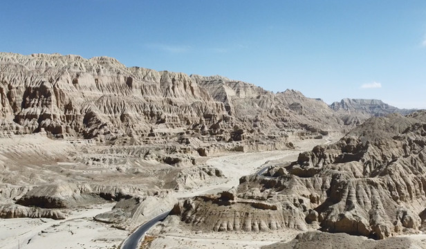 从高海拔穿进低海拔的土林城,进入环绕扎达的奇异土林地貌——札达土林。札达以其土林闻名于世,城堡、碉楼、宫殿,气势磅礴,比之新疆魔鬼城是更加雄伟壮观得多。这里几百万年前还是河湖,经流水侵蚀而形成的特殊地貌,在高原迷幻光影的衬托下,宛若神话世界。