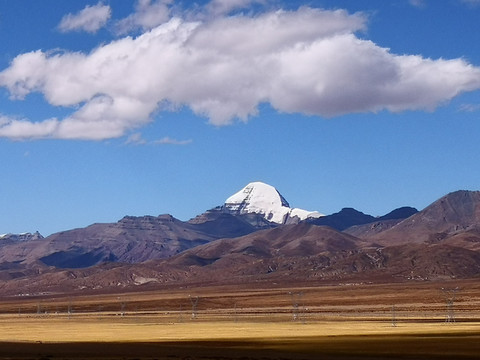 神山冈仁波齐雄伟地矗立在路边,很远的就能望到