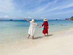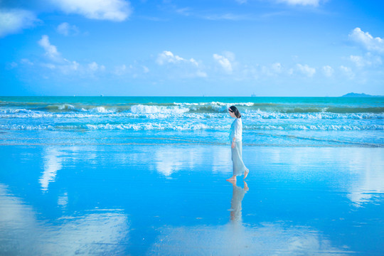 平缓的沙滩,对于孕妇来说,真的是很友好呢!光着脚丫在沙滩上漫步,任由柔软的沙粒和海水轻抚着脚面,完全不用担心会摔倒。