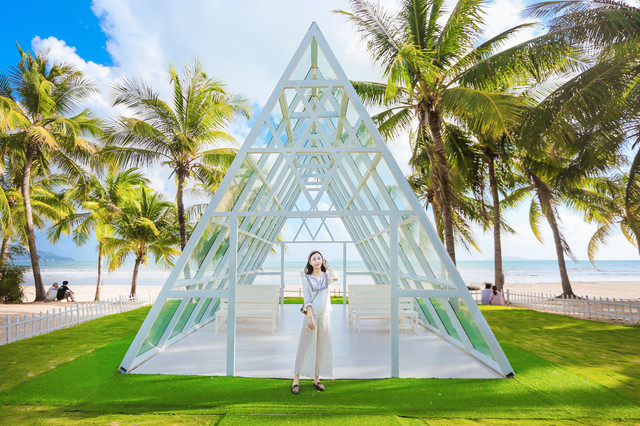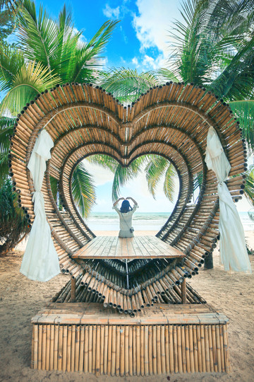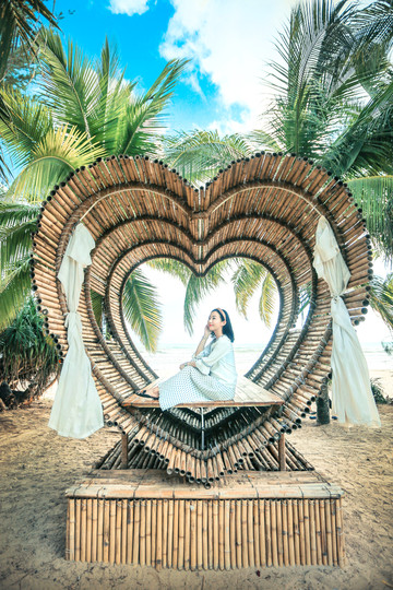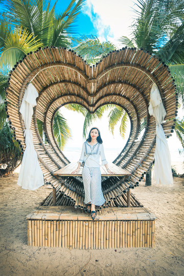 无论是在椰林当中,还是在沙滩上,都设置了许多好看的拍摄场景。