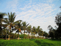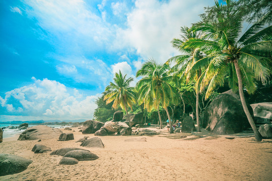 景观优美迷人的热带植物园林,与银色的沙滩、蓝色的大海相映成趣,组合成一幅色彩斑斓的美丽画卷。