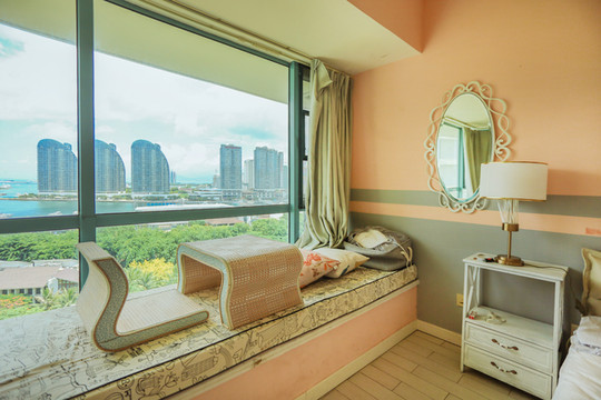 我们订的这套,一共有三个客房。其中最大的那个客房有超长的飘窗,可以直接看到海景。另外两个客房的窗户是和阳台连在一起的,也是可以看到海景的。