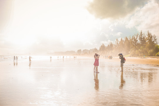 我们来到小 东海 摄影基地的时候,大约是下午四点左右,这个时候的光线还比较强,温度还比较热,拍摄婚纱照的团队也比较多。