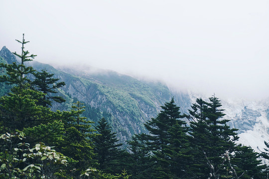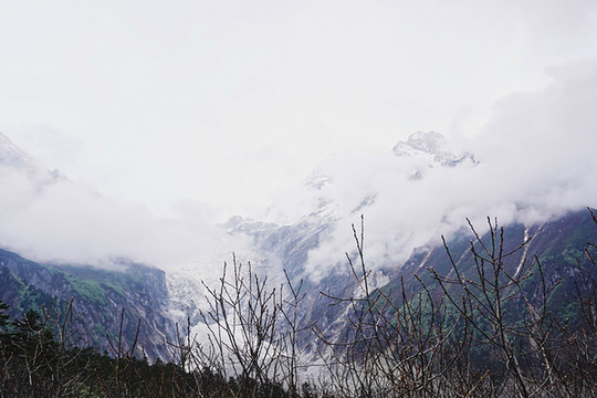 在海螺沟等待云雾散开的那一刻,雪山就在眼前。