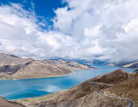 再遇羊湖,幸运地遇上好天气,眼前的羊湖就是一幅壮美的画卷。