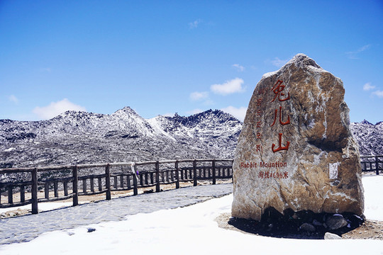 路过很多次的兔儿山,每次不是下雪就是阴天,这次庆幸地遇上了大晴天,蓝天白云下的兔儿山就特别清晰。