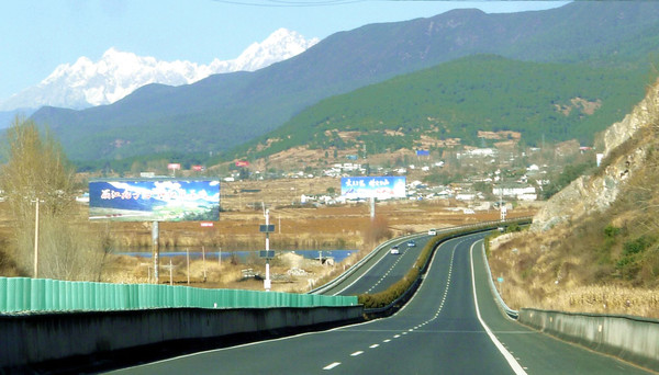 14:10离开大理古城,驱车直驶丽江,先走国道G214,再转大丽高速G5611,15:28在洱源县的“牛街停车区”稍停,主要是让宝宝“放风”。继续上路,16:15看到玉龙雪山,随后不久又驶经九河停车区,这里是属于丽江市的玉龙纳西族自治县。16:35在“拉市海服务区”稍停并加油,服务区位于山坡之上,视野十分辽阔,可以清晰眺望玉龙雪山与拉市海的美景。