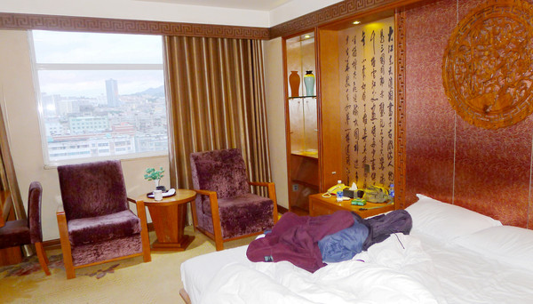 南站位于昆明市的呈贡区,也就是以前的呈贡县,算是昆明市远郊,我们在网上预定的“润恒大酒店”地处昆明老城西山区,相距37公里,接车后立即前往。油箱内近乎没油,首先是找地方加油,然后一路疾驰,15:32抵达酒店。“润恒大酒店”房间蛮大,宝爸称其性价比也颇高,特别是附带专用停车场,很适合自驾。