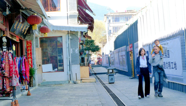 终于走到洋人街,但却大失所望,整条街道都在翻新、改建,冷冷清清没几个行人,更别提洋人。我2006年9月曾在大理古城见到满大街的洋人,此番再来,在古城最繁华地段沿着南城门→复兴路→洋人街→博爱路→博爱门走了一圈,根本就没看见一个洋人,不知是否因为此刻并非旅游旺季?