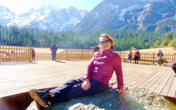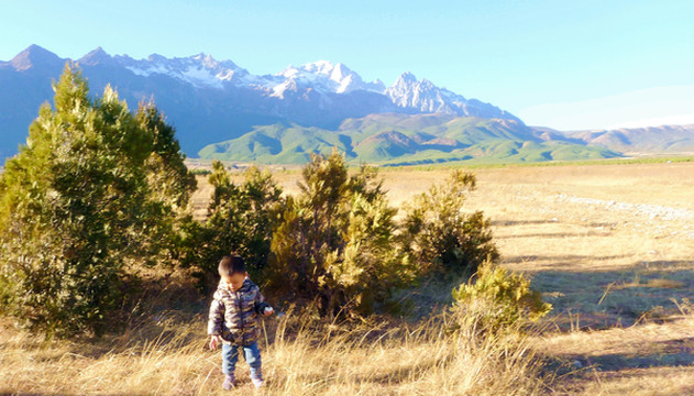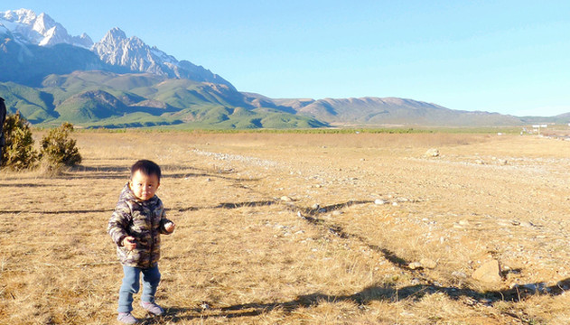 16:30离开蓝月谷,搭乘景区交通车返回“服务中心”,再换乘我们自己的汽车前往丽江市区,宝爸已用手机预定了“丽歌假日酒店”,它位于市区内的花马街。17:10路径“甘海子”,这里原为高山冰蚀湖泊(海子),后因气候变化湖面萎缩以至最终干涸,变成为辽阔草甸,当地人称“干海子”,景区建设取其谐音改称“甘海子”。我们将汽车开下公路进入大草甸拍照,远方是绵延的雪山,近处长满了牧草和矮丛灌木,宝宝一个小人,独自留影雪山、草甸,感觉很是有趣。