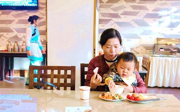 2018.12.22(D11),今拟前往虎跳峡,位于迪庆藏族自治州,与丽江市区相距约80公里。我和宝爸曾于1999年到过虎跳峡,景区很小,游走一遍耗时不多,按照我的原计划应该是上午尽早出发,游罢虎跳峡直接赴大理,下午还来得及游览大理三塔。然而,宝妈感觉在“丽歌假日酒店”住得很惬意,希望再多住一晚,于是,今日的行程就更改为上午游览虎跳峡,游罢回丽江,再次游逛丽江古城。如此一来今日就显时间宽裕,9:30方才去吃早餐。丽歌假日酒店的免费早餐内容颇丰,特别是还有多种西式糕点,这应该是得益于酒店还附带经营糕点烘培屋,大家都吃得很饱,今日的午餐又可以免了。